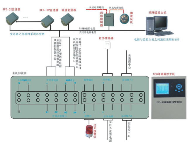 相关安全法规: 1、GB8905-1996《六氟化硫电气设备中气体管理和检测导则》第七条规定“在户内设备安装场所的地面层应安装带报警装置的氧量仪和六氟化硫浓度仪”。 2、DL/639-1997《六氟化硫电气设备运行,试验及检修人员安全防护细则》和《电业安全工作规程》第199条规定“在SF6配电室低位应安装能报警的氧量仪和SF6气体泄漏报警仪。”